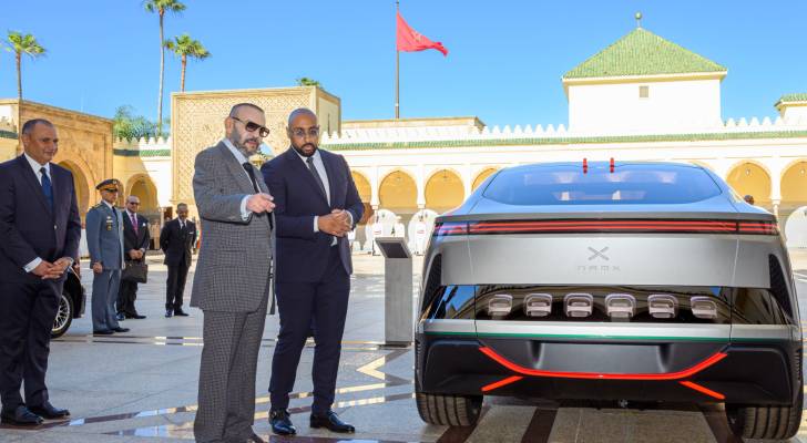 عاهل المغرب يستعرض احدى السيارات المصنعة بالكامل في المغرب